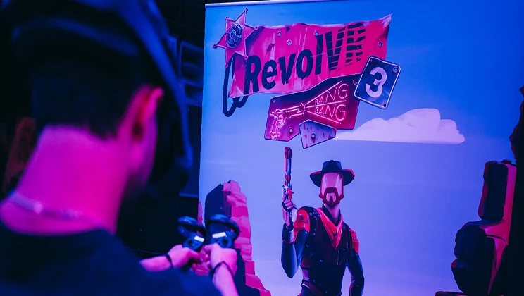Daag je vrienden uit voor een VR schietpartij in het moderne Wilde Westen. Gewapend met twee revolvers duik je weg achter objecten terwijl je behendig je tegenstanders uitschakelt.